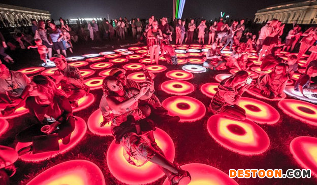 感官體驗類互動燈光裝置:互動裝置能將游客的感官充分全面化發展,也就是我們常說的刺激了人的六種感官。互動裝置把一系列的實物轉化成視覺、聽覺等感官的體驗,讓中藝光影的設計師們的想法更加生動的展現,更具生命力。